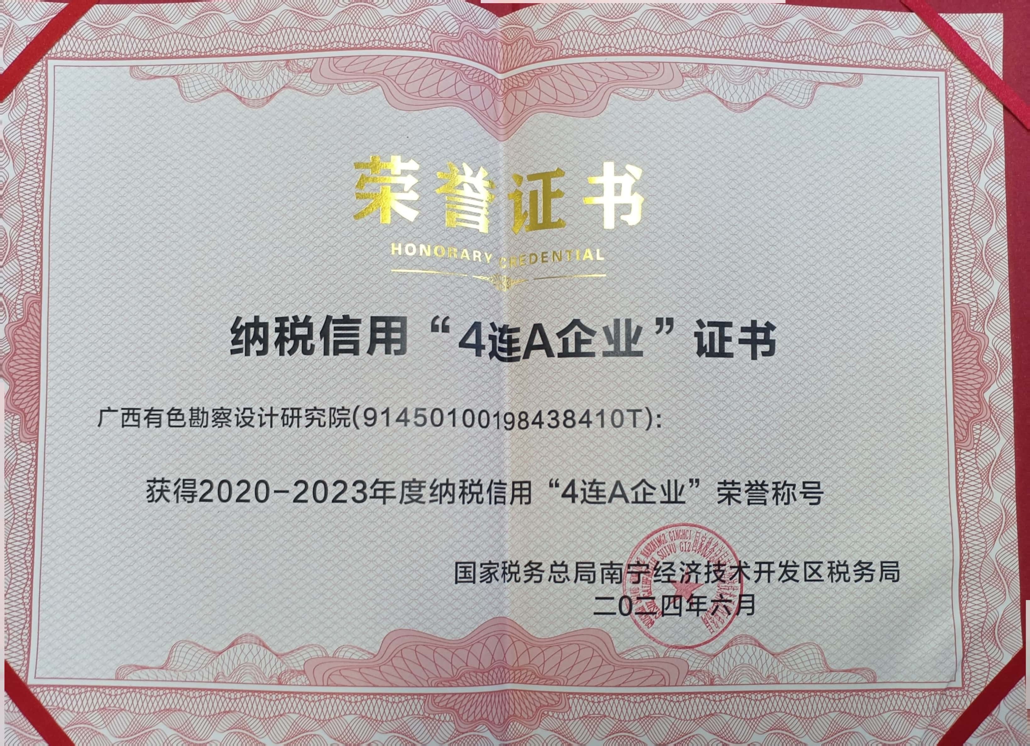 我院荣获2020-2023年度纳税信用“4连A企业"荣誉称号