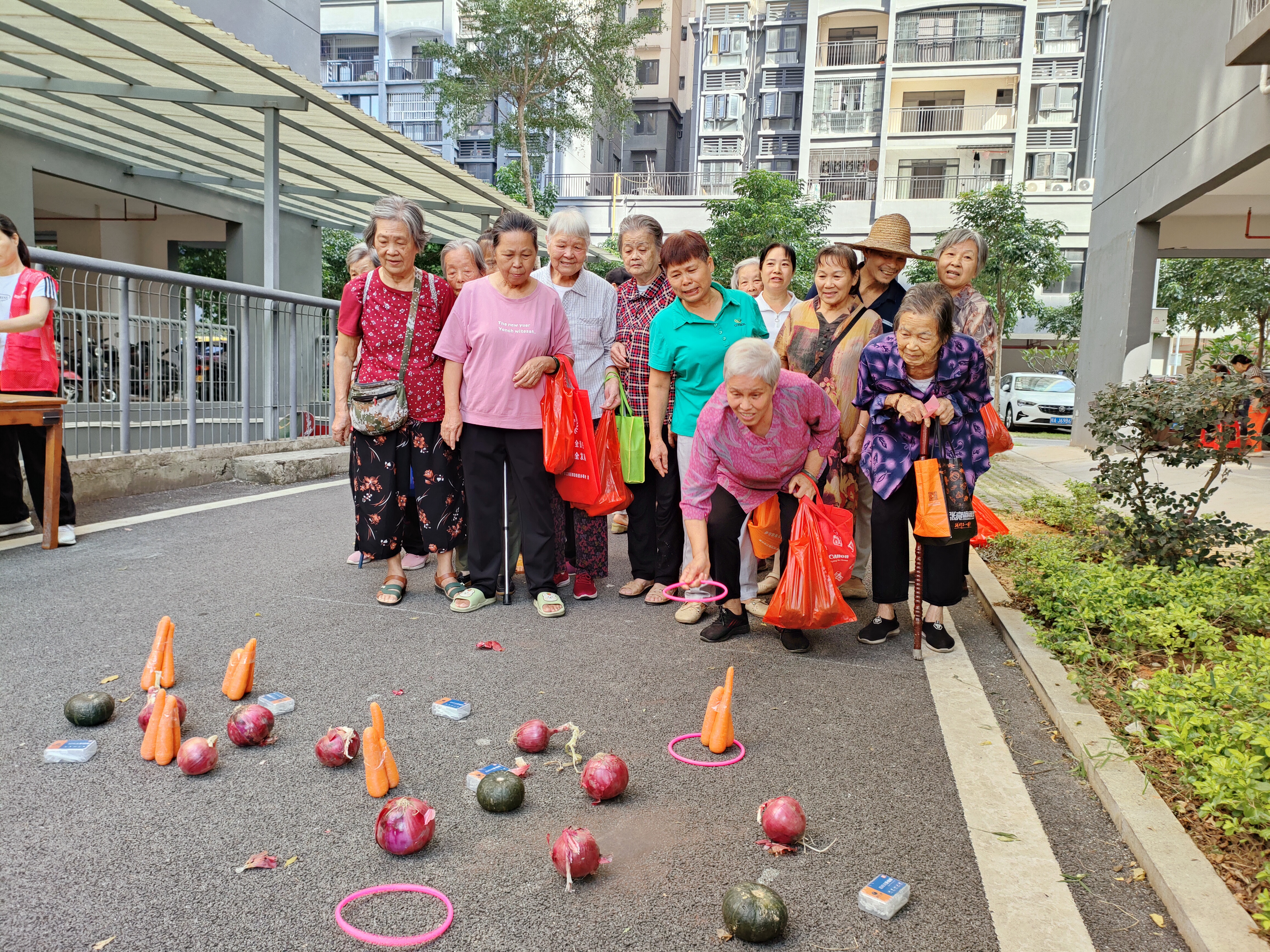 共建活动为退休职工安排了趣味套圈、投壶、浸水夹珠等安全易操作的娱乐项目,奖品贴心地设置为南瓜、萝卜、洋葱等健康蔬菜。大家热情高涨,一边感受着活动的乐趣,一边与昔日老友叙旧言欢,丰富了退休职工的精神文化生活,感受到了单位大家庭的温暖。