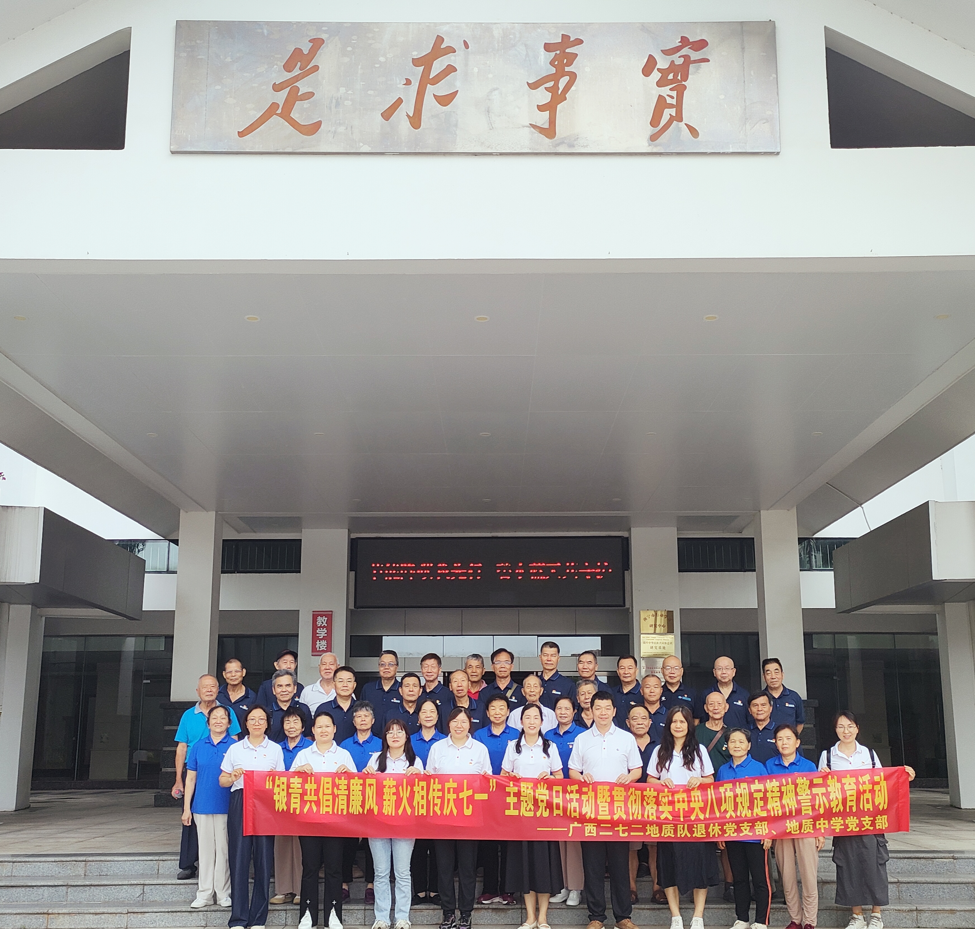 本网讯(罗虹 张白雪 报道)为庆祝中国共产党成立104周年,深入学习贯彻党的二十大和二十届二中、三中全会精神,扎实推进深入贯彻中央八项规定精神学习教育,6月30日上午,我院(队)退休党支部与地质中学党支部开展了“银青携手话清廉 薪火相传庆七一”系列共建活动,以一堂深刻党课、一场荣光仪式、一次清廉教育,奏响“银青”协奏曲。