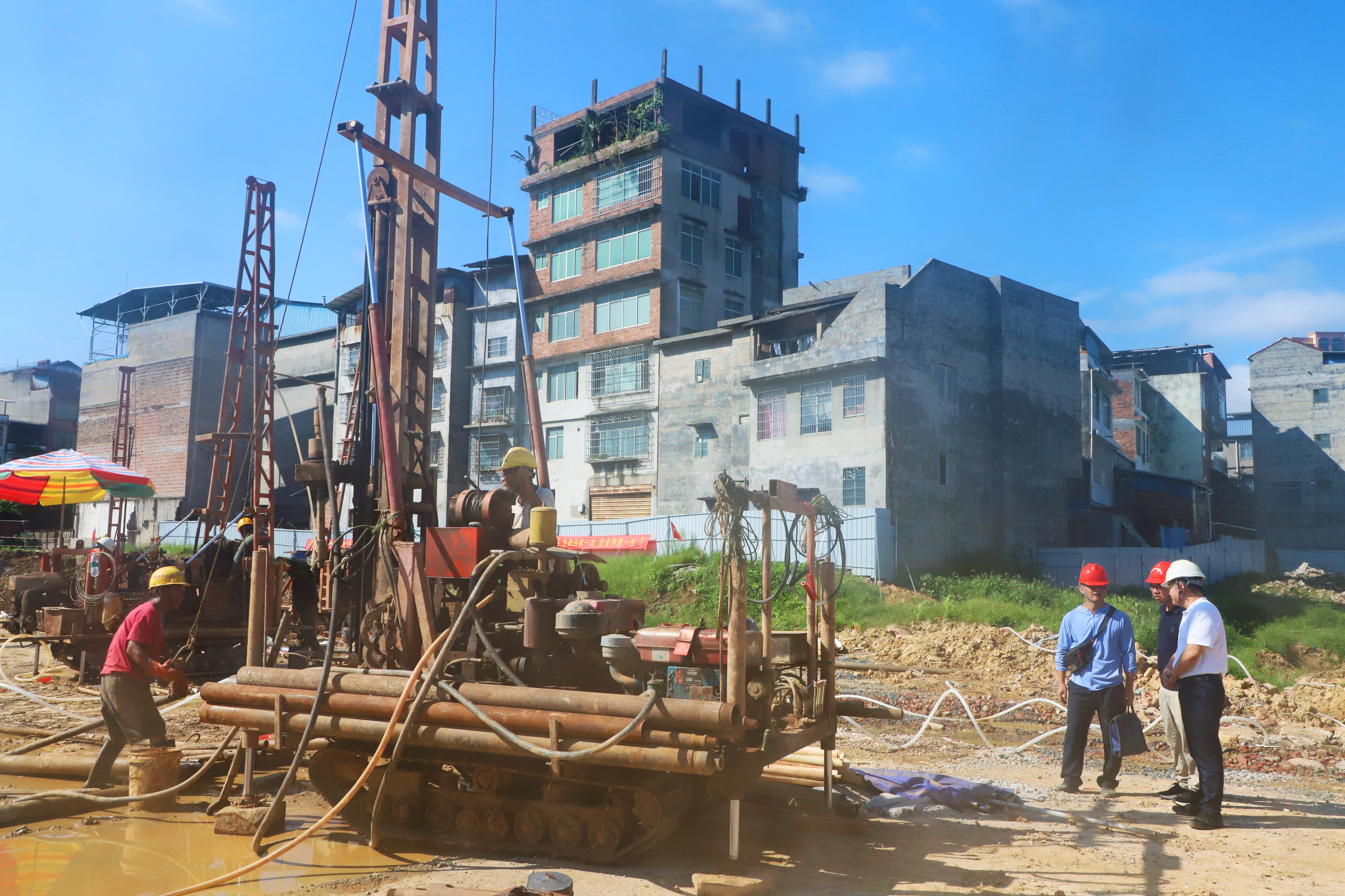 本网讯(李映俊 报道)近日,我院副院长徐志俊带队前往柳州市融安县长安镇聚澜大厦施工勘察(超前钻)项目进行野外项目技术质量和安全检查。